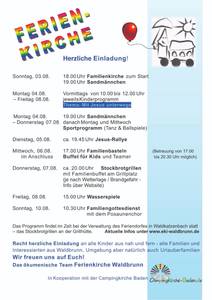 Eine Woche Programm für Kinder und Familien, wieder unter dem Schirm der Campingkirche Baden