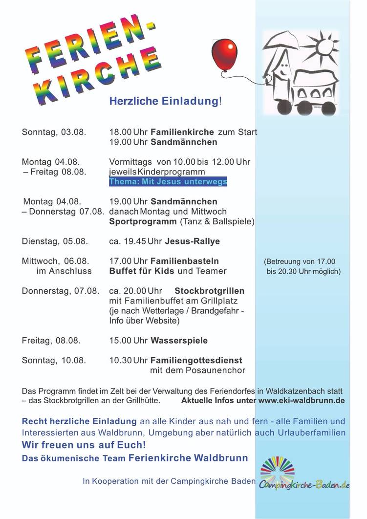 ...wollen wir dieses Jahr in unserer Woche Ferienkirche im Feriendorf Waldkatzenbach ganz bewusst sein. Dazu lädt das ökumenische Team der Ferienkirche wieder alle Kinder und Familien, und natürlich alle Interessierten recht herzlich ein.