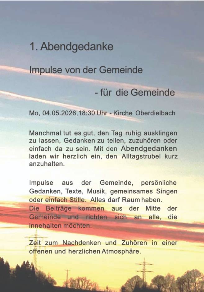 Herzliche Einladung zu ganz besonderen Abenden, aus der Gemeinde für die die Gemeinde gestaltet, weil es so viele wertvolle Gedanken in unseren Gemeinschaften gibt, und man sich viel zu wenig Zeit dafür nimmt.
